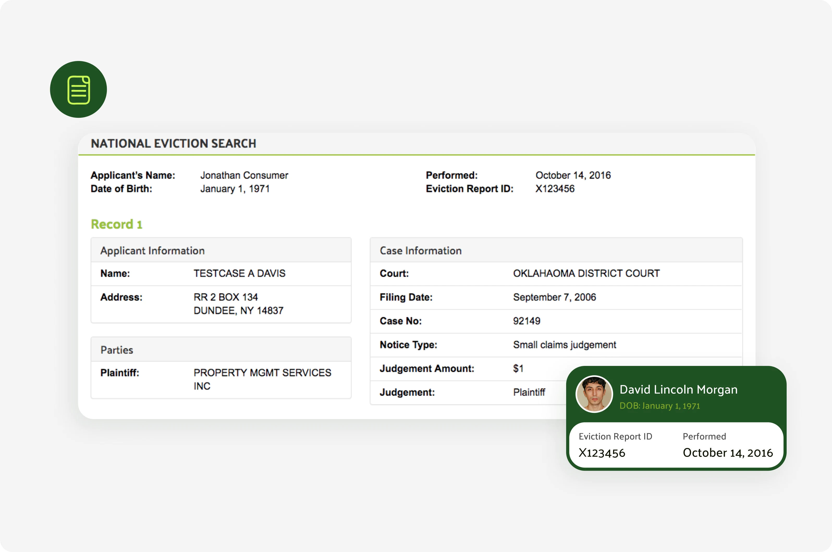 Quickly shows your eviction history, giving landlords insight into your renting experience.